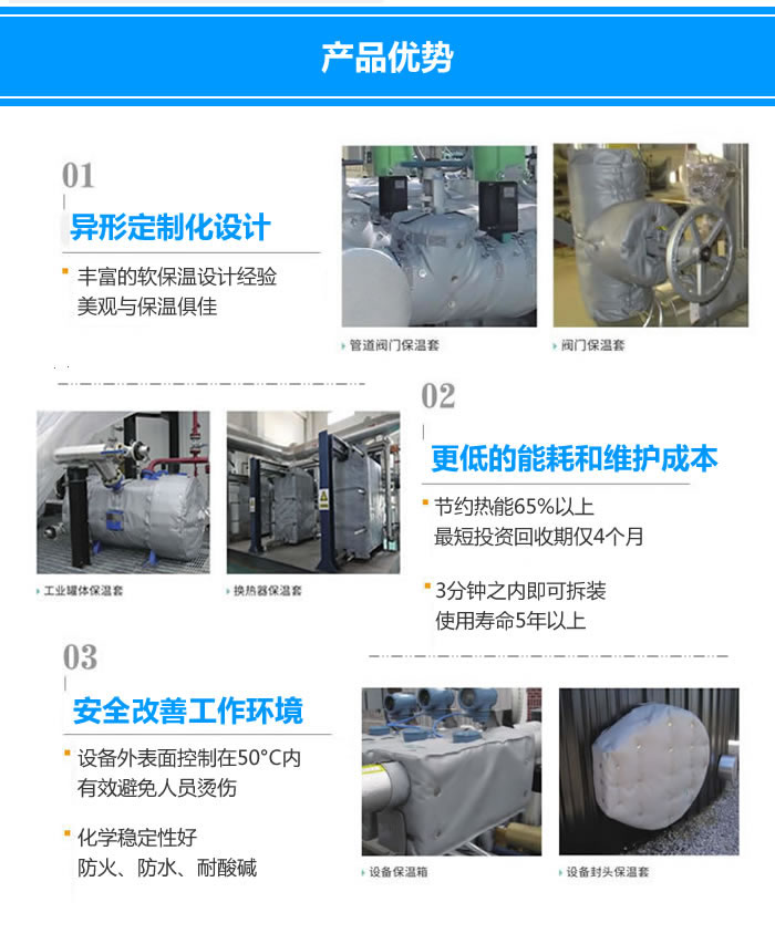 柔性可拆卸式設備保溫隔熱罩產品性能及特點: